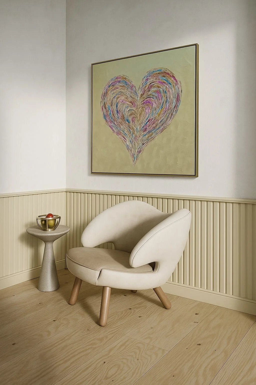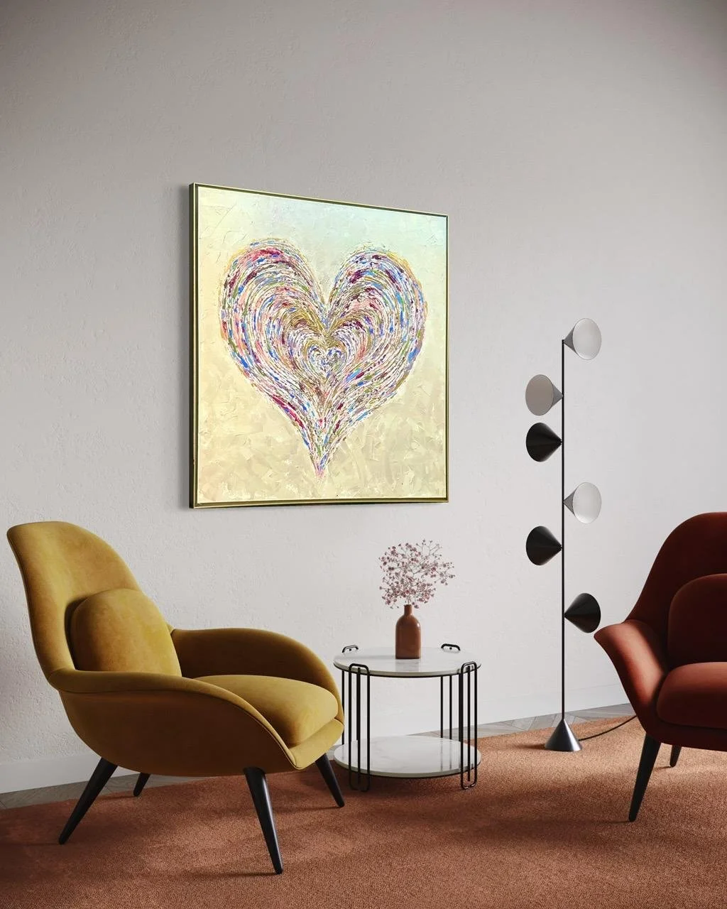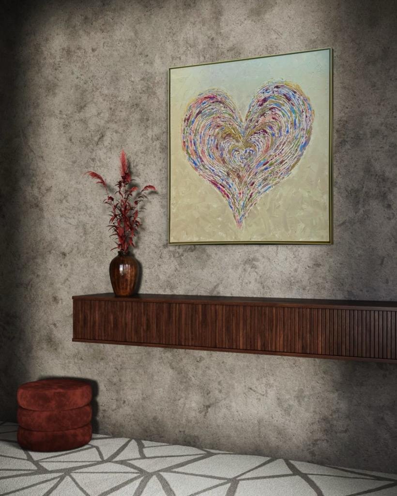 Ethereal Love is a sophisticated 36x36 inch mixed media canvas artwork, elegantly framed in gold. Inspired by pastel spring hues, this piece blends soft, delicate tones to evoke a serene and uplifting atmosphere. Perfect for adding a refined touch of tranquility and grace to any living space.