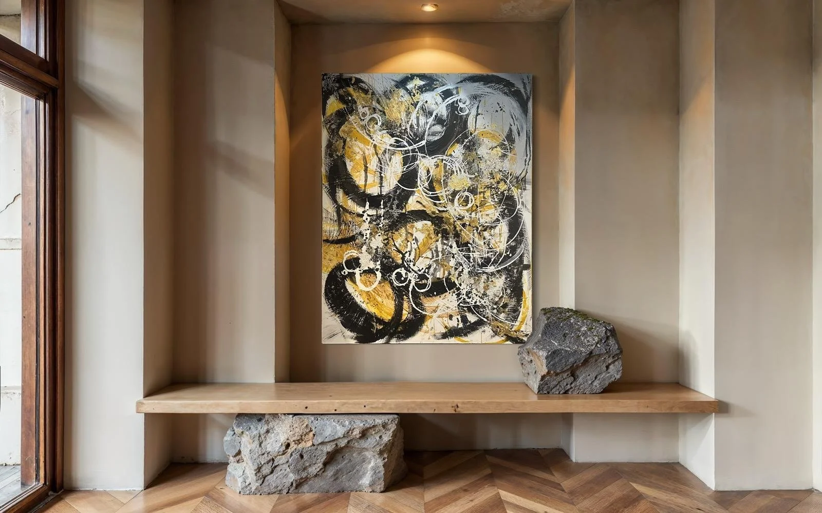 Inner Wonders is a captivating acrylic painting on canvas, elegantly framed in silver to complement its refined aesthetic. Drawing inspiration from the charm of tradition, this piece brings depth and sophistication to any space, inviting reflection and appreciation of timeless beauty. Its thoughtful composition and subtle details make it a distinguished addition to your collection.