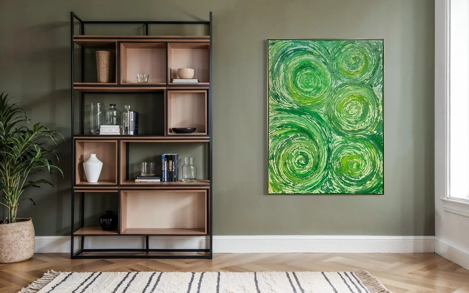 This sophisticated acrylic on canvas artwork, framed in elegant gold, captures the serene essence of an oasis. Its rich textures and harmonious hues evoke a tranquil refuge, perfect for adding a refined touch of calm and beauty to any living space.